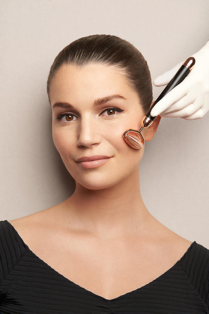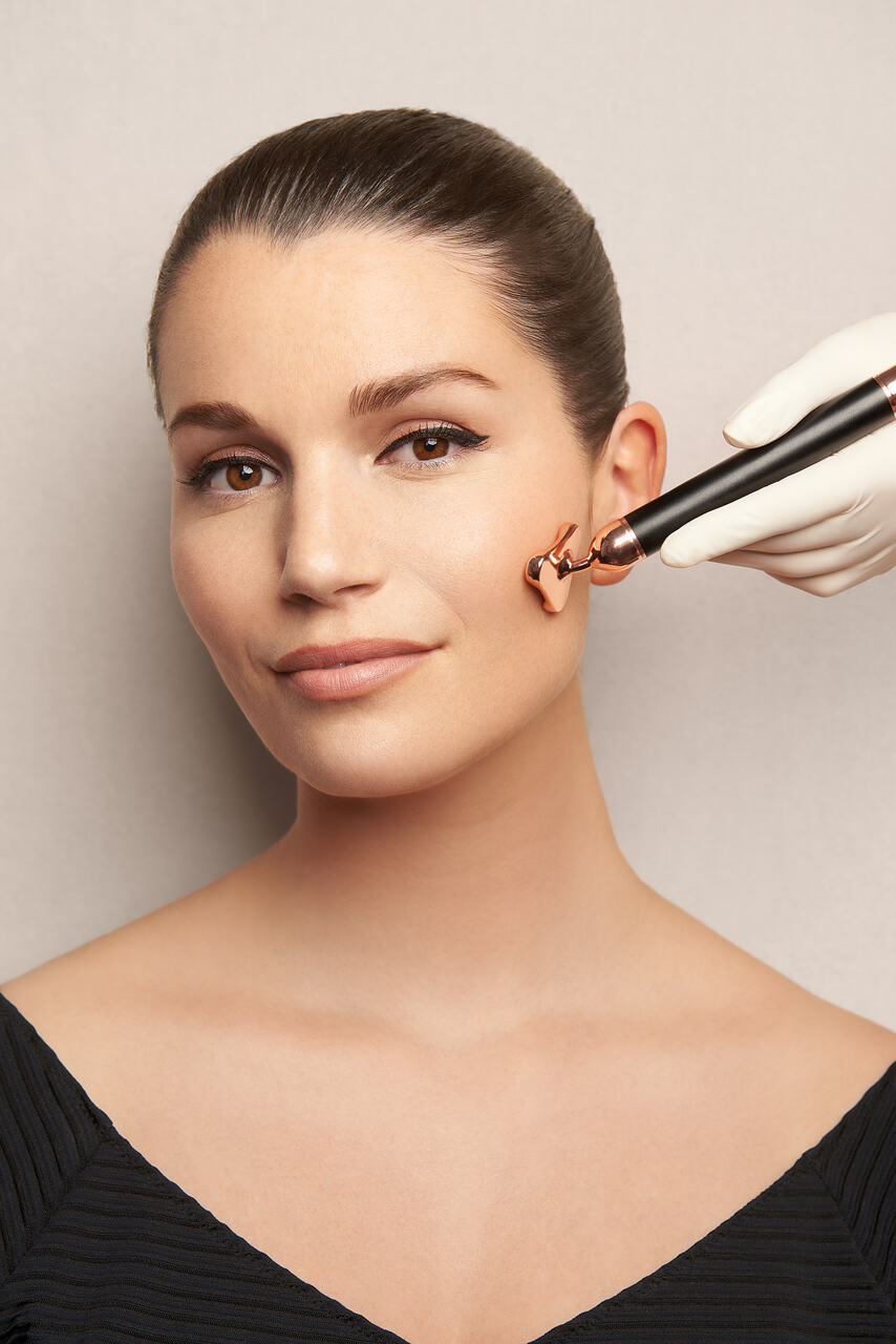 Akcesorium zabiegowe do Gabinetów Kosmetycznych/Spa lub jako urządzenie stymulujące do pielęgnacji domowej. Dwie wymienne końcówki zostały wykonane ze stali nierdzewnej w kolorze różowego złota. Połączenie akupresury, wibracji i drenażu pobudza metabolizm skóry, rozluźnia mięśnie, wspomaga przepływ krwi i chłonki oraz poprawia penetrację składników aktywnych w głąb skóry. KOŃCÓWKA DIGIDRAIN Inspirowana akupresurą i drenażem. Uciski w połączeniu z mikrowibracjami, pozwalają na stymulację punktów energetycznych, pobudzają mikrokrążenie i przepływ chłonki. Toksyny są eliminowane, obrzęki twarzy są zmniejszone, cera jest świeższa. KOŃCÓWKA DIGISTIM Inspirowana mikronakłuwaniem. Ruchy głębokiego wygładzania połączone z wypustkami i mikrowibracją stymulują włókna kolagenowe i elastynowe. Dzień po dniu poprawia się napięcie i koloryt skóry, drobne linie i zmarszczki zostają wygładzone. Końcówka pozwala na głębszą penetrację składników aktywnych w głąb skóry. Link: https://www.youtube.com/watch?v=rJjGxR3YkxE&t=2s