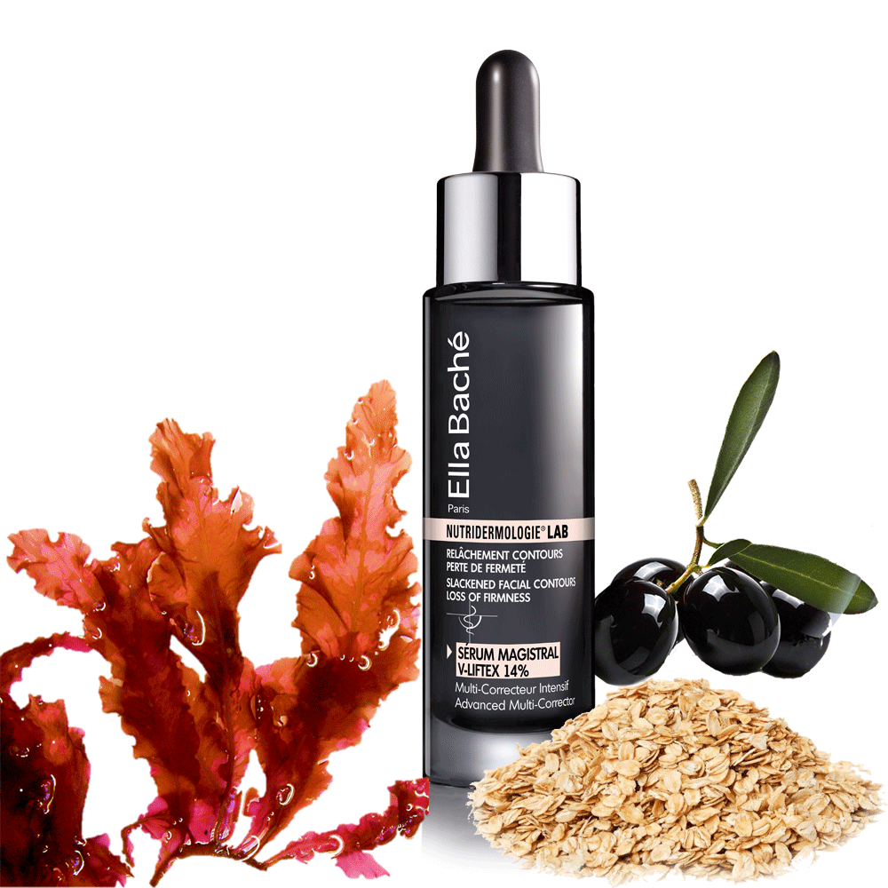 Sulfo-karabiozy z czerwonych alg - lifting i wygładzenie owalu twarzy, poprawa mikrokrążenia. Oleo-serum z Padina Pavonica (brązowa alga) - ujędrnia skórę, spowalnia procesy starzenia. Polisacharydy z cukru owsianego - efekt liftingu, podniesienia owalu twarzy i wygładzenia zmarszczek. Organiczny silanol + aminokwas hydroksyprolina - aktywują odnowę komórkową, działają antyrodnikowo i ujędrniająco. Kwas maslinowy z oliwek - zagęszcza skórę, zapobiega fotostarzeniu. 0% silikonów, 0% parabenów, 0% olejów mineralnych, 0% barwników Tolerancja badana pod kontrolą dermatologiczną.