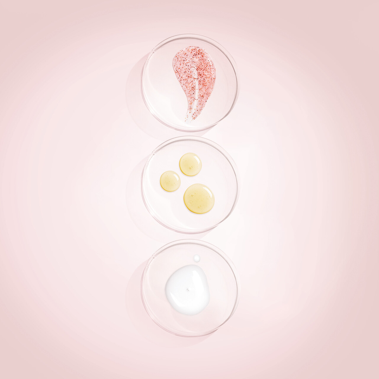 Idealny produkt dla każdej skóry, nawet najbardziej wrażliwej. Produkt o potrójnych działaniu 3 w 1: rozświetla, peelinguje i odżywia skórę. Proszek celulozowy oraz żurawina delikatnie złuszczają martwy naskórek, bogaty olej z nasion pomidora przywraca skórze blask oraz działa silnie antyoksydacyjnie. Niezwykle przyjemna, zmieniająca się formuła produktu z żelu w olejek, a następnie w mleczną emulsję, nada skórze aksamitną gładkość.